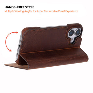 The leather Folio case for the iPhone 17 was crafted with fans of leather like you in mind. The case is crafted from genuine leather; therefore, as time passes, it will develop a timeless and robust look while keeping your phone safe from everyday use.
