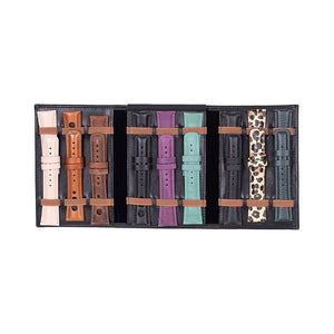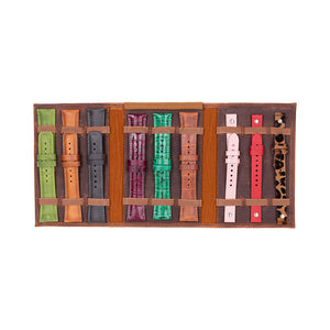 Keep your equipment in order as you travel using this Leather Watch Band Triple Organizer. Designed to hold Apple Watch bands, FitBit watch bands, and standard watch straps, this trendy organizer keeps your collection safe and in order.